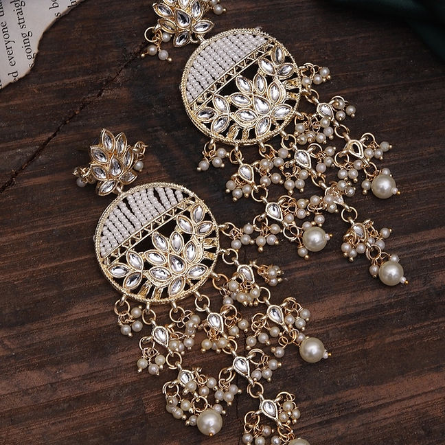 Chandbalis are a type of traditional Indian earring that has a unique and eye-catching design. These earrings are characterized by their large, circular shape and intricate detailing, often including intricate patterns and gemstones.