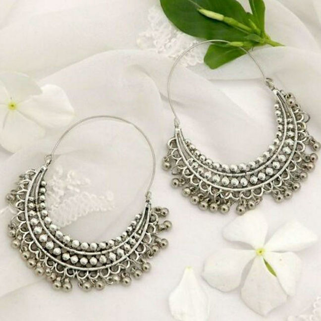 (Buy Now: https://www.fusionvogue.com/product-page/oxidized-lightweight-silver-plated-chandbali-earrings)