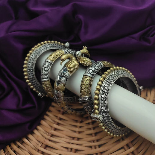 Shop Now: https://www.fusionvogue.com/product-page/silver-lookalike-two-tone-bangles-set-of-5-pc
